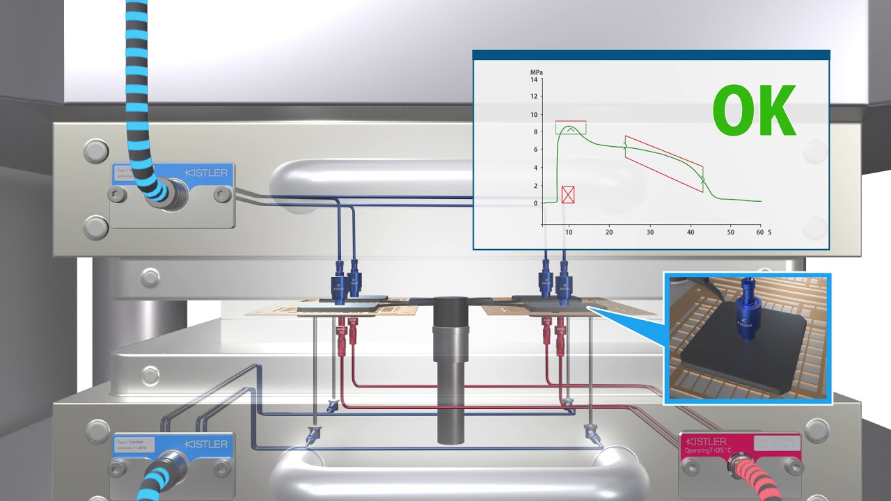 キスラーはこれらの課題に対して、従来の流動解析に加えて金型キャビティ内の型内圧と温度を実測することを提案している。以下に、その有効性と例を示す。